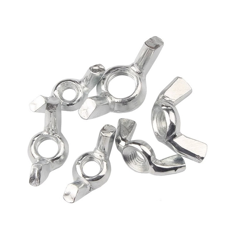 Die runde Metallflügelmutter ist ein manuell anzuziehendes Befestigungselement mit zwei kreisförmigen „Flügeln“ (d. h. Flügelplatten) und einem mit Gewinde versehenen Mittelteil. Die Oberflächen dieser Flügelplatten sind glatt und nach außen gewölbt, sodass Sie sie problemlos festziehen und lösen können. Es hat keine scharfen Kanten, die Ihre Finger verletzen könnten. Dieses Metallmaterial – meist Kohlenstoffstahl und beschichtet mit Zink oder Edelstahl – bleibt auch nach wiederholtem Gebrauch robust und langlebig. Die Gewinde werden durch Walzen geformt und sind im Gebrauch sehr glatt. Es wird in Verbindung mit Standardschrauben und Unterlegscheiben verwendet. Man findet es häufig in Abdeckungen, Klammern, verstellbaren Möbeln oder anderen Teilen, die häufig zerlegt werden.