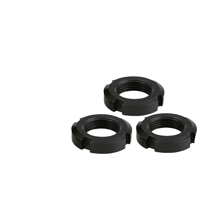 In der Öl- und Gasindustrie werden robuste geschlitzte Rundmuttern mit Sicherungsring in Ventilkomponenten und Bohrgeräten verwendet. Sie können in Hochdruck- und korrosiven Umgebungen ordnungsgemäß funktionieren. Die meisten dieser Muttern bestehen aus legiertem Stahl und sind mit einer speziellen Verschleißschutzbeschichtung versehen.