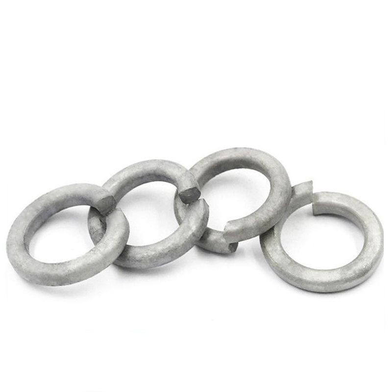 Sie sind Split -Ring -Unterlegscheiben mit mäßiger Dicke - typischerweise zwischen 1 und 3 Millimetern - aus heißen, verzinktem Stahl. Dieses Material verleiht ihnen ein silbernes Aussehen und einen exzellenten Rostbeständigkeit.