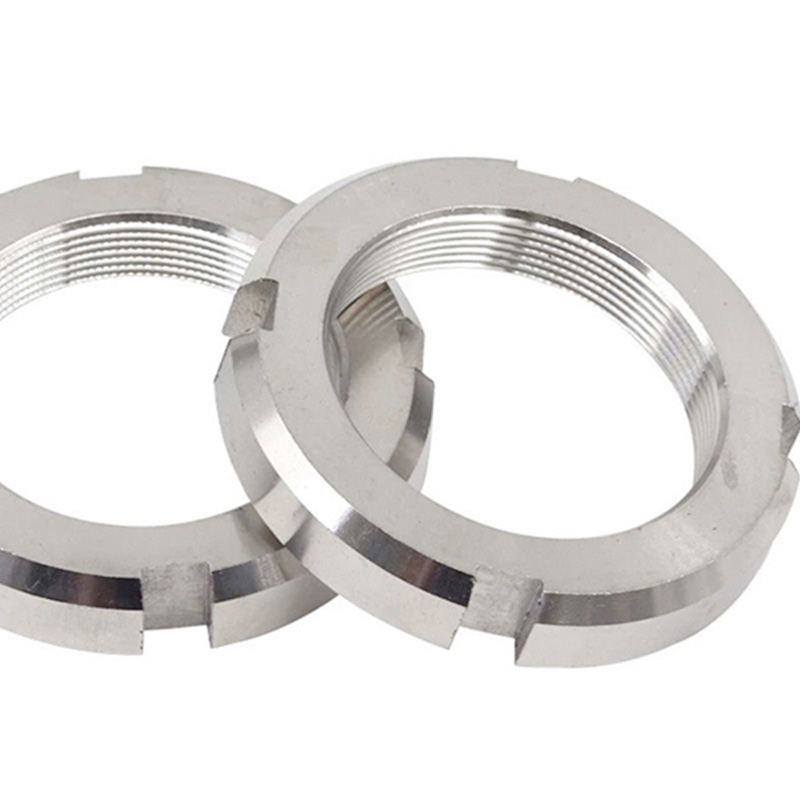 Glatt konturierte, geschlitzte Rundmuttern bestehen aus verschiedenen robusten Materialien und eignen sich für unterschiedliche Zwecke. Das gebräuchlichste Material für Muttern ist Kohlenstoffstahl – es ist kostengünstig und langlebig und wird häufig in herkömmlichen mechanischen Komponenten wie Wellen und Naben verwendet.